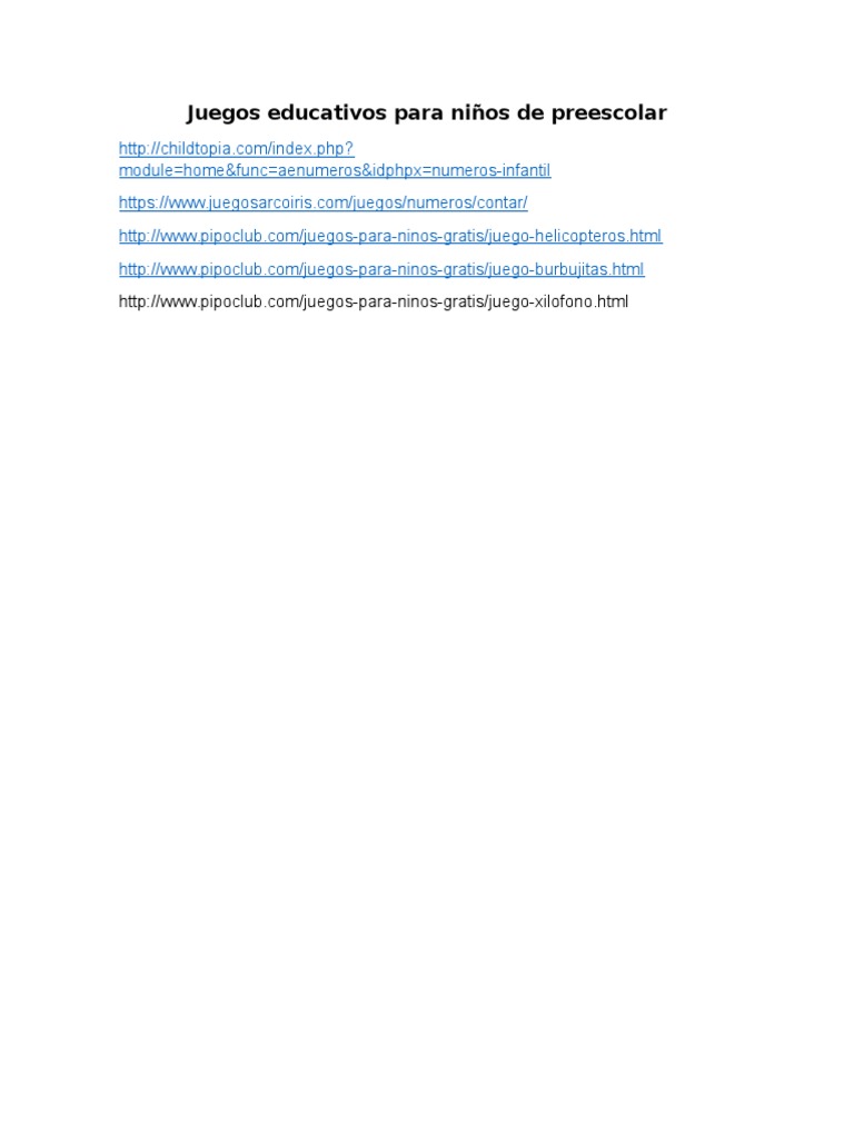 Además, prestan mucha más atención a las palabras que escuchan, por lo que el vocabulario será muy importante en estos juegos educativos para niños. En pipoclub encontrarás los juegos educativos infantiles de más éxito, creados para niños de todo el mundo. A través de nuestros juegos los pequeños utilizarán sus habilidades matemáticas para pasar cada juego matemático. Aprender el conteo, las formas y colores, las primeras palabras, los números, mejorar su capacidad matemática básica… con dino tim: Para los niños, los juegos de inglés deben basarse en metodologías educativas que fomentan el aprendizaje natural u orgánico. ★ diseño simple y fotos encantadoras. Ver más ideas sobre actividades, actividades para preescolar, actividades para niños. Ver más ideas sobre actividades para preescolar, actividades, actividades para niños. Ver más ideas sobre juegos educativos preescolar, matemáticas para niños, actividades para preescolar. Juegos interactivos para ninos de preescolar mejor de mejores 233. Elmo y lola, un día de juegos. Todos los días miles de niños, padres y educadores de 12 países utilizan nuestros juegos infantiles como herramienta educativa. Ver más ideas sobre actividades montessori, actividades para niños, actividades para preescolar.
